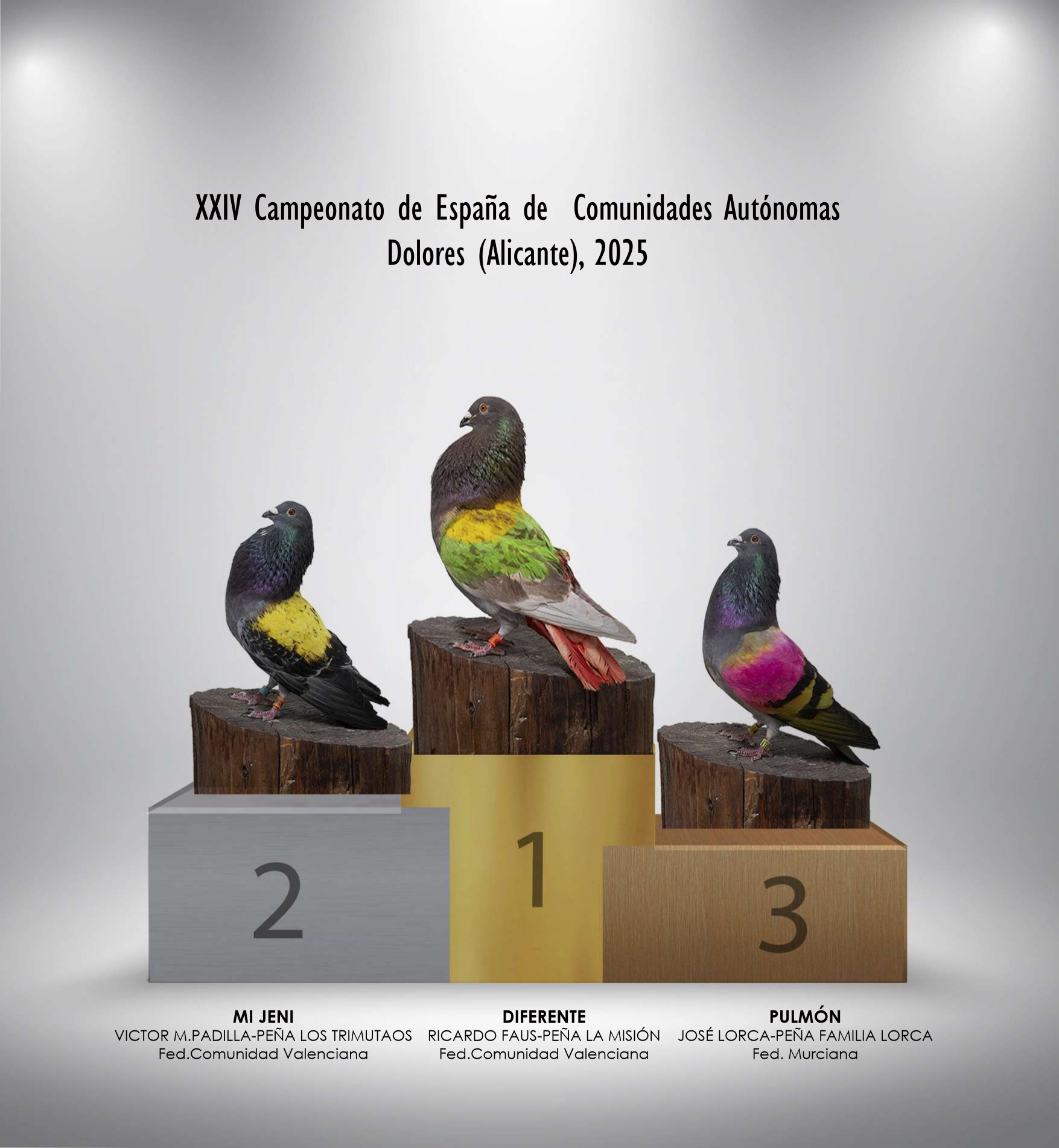 El sábado pasado se celebró la última prueba de regularidad y se entregaron los trofeos a los palomos ganadores del XXIV Campeonato de España de Comunidades Autónomas, celebrado en Dolores (Alicante). La clasificación quedó de la siguiente forma: